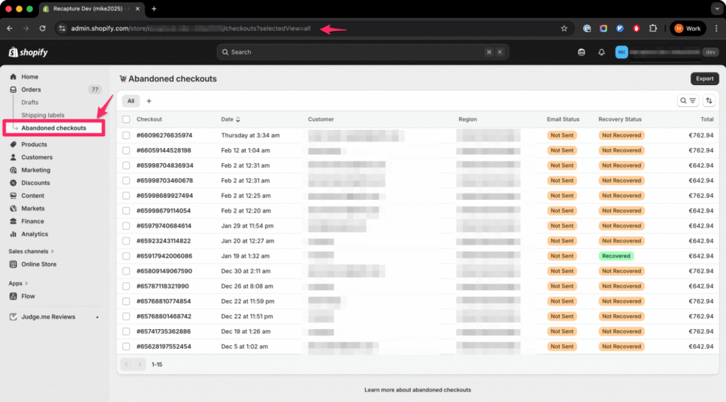 For example: When a customer begins checkout but leaves before completing payment, Shopify records that abandoned checkout. Recovery emails can then be sent automatically to remind the customer to return and finish the purchase.